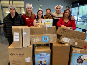 Giving From the Hart/Samta Party – The Denver office adopted 40 individuals from Jewish Family Services and 25 children from the Rocky Mountain Children’s Law Center to make their holidays brighter. The RMCLC works to transform the lives of abused, neglected, and at-risk children through compassionate legal advocacy, clinical services, education, and public policy reform. Jewish Family Services of Colorado believes in strengthening the community by providing vital social services to people in need from mental health needs to elderly care. Both organizations provided lists of the wish lists and people were “adopted” by individuals and/or groups to purchase gifts.