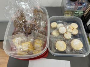- Gift Bags: 40 bags for older adults (non-slip socks, activity books, puzzles, personal care items) and 20 bags for teens (fuzzy socks, craft supplies, games, hot chocolate)