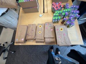 • Gift Bags: 40 bags for older adults (non-slip socks, activity books, puzzles, personal care items) and 20 bags for teens (fuzzy socks, craft supplies, games, hot chocolate)